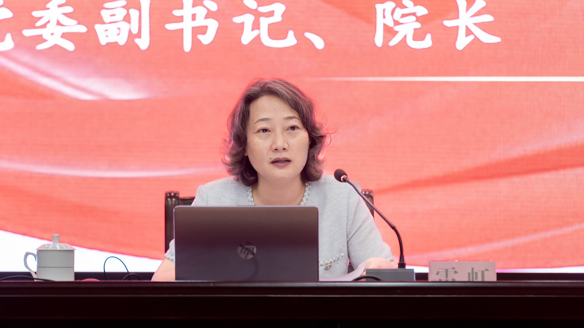 副书记、院长雷虹以《筑牢共产党人的情怀底蕴,建设重庆科技创新与服务高地,为新时代新征程新重庆建设作出新贡献》为题,为院全体干部职工讲授专题党课,交流分享“共产党人的情怀”。
