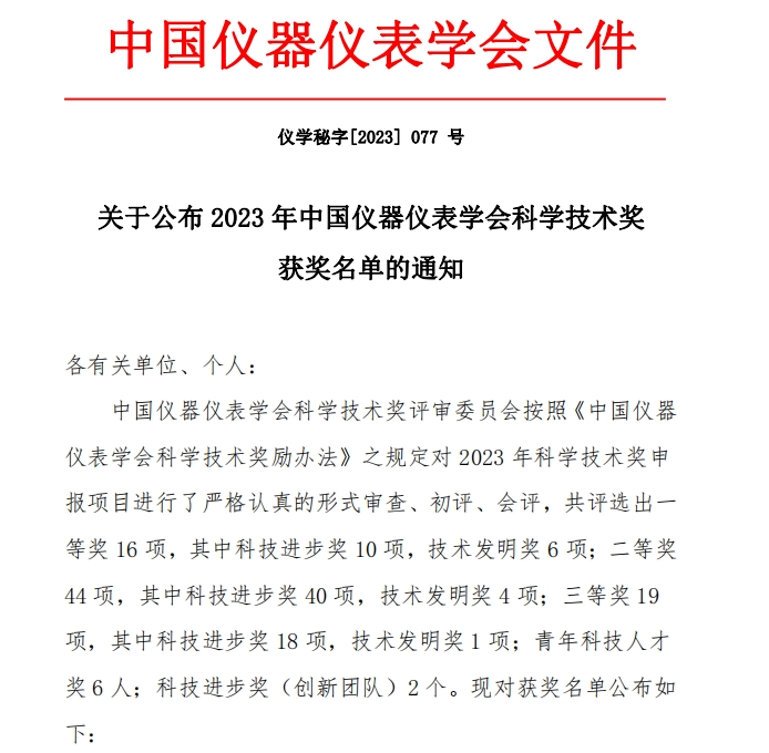 近日,中国仪器仪表学会公布“2023年中国仪器仪表学会科学技术奖获奖名单”,91吃瓜
